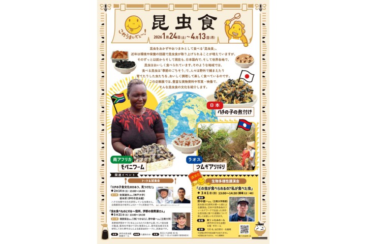 この企画展では、豊富な実物資料や写真・映像で、そんな昆虫食の文化を紹介します。